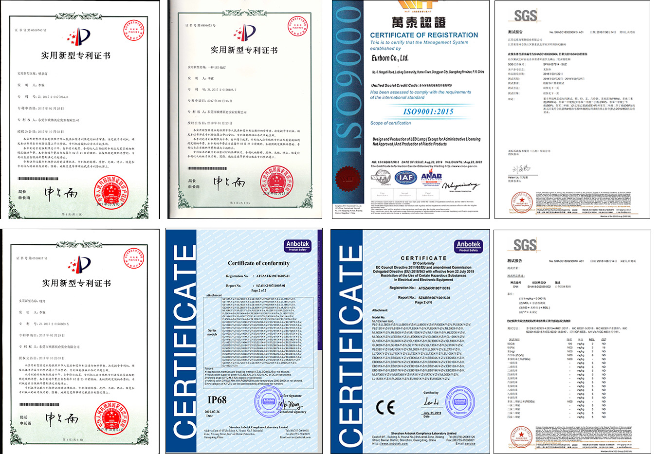 Eurborn has qualified certificates such as IP, CE, ROHS, appearance patent and ISO, etc.